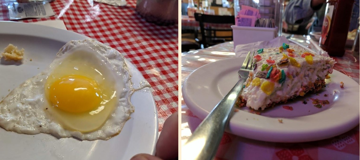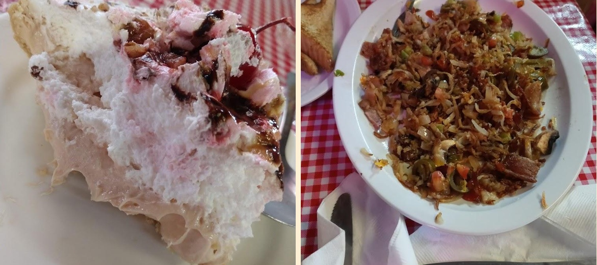 Try the Hand Breaded Chicken Fried Steak and the Loaded Hashbrowns. The desserts, especially the Chocolate Coconut Crème Pie, are also popular.
