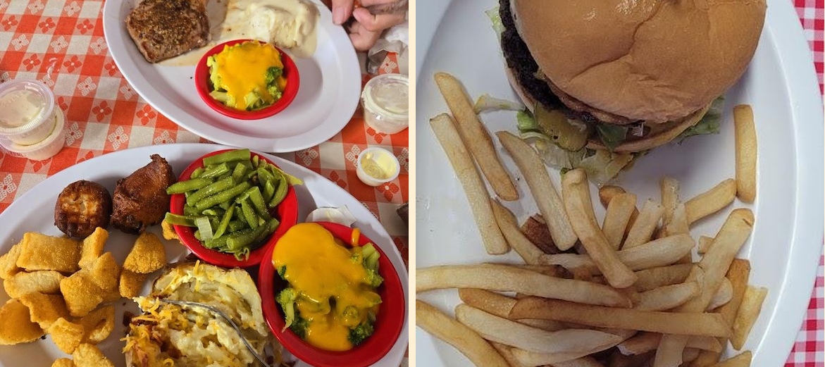 Diners rave about the chicken fried steak, known for its flavor and generous portions. The loaded hash browns, loaded to perfection, always receive praise. Many guests adore the diverse homemade desserts, with cheesecakes being a true highlight. The welcoming ambiance speaks to most, ensuring families feel at home. Fast and attentive service also stands out, making meals enjoyable.